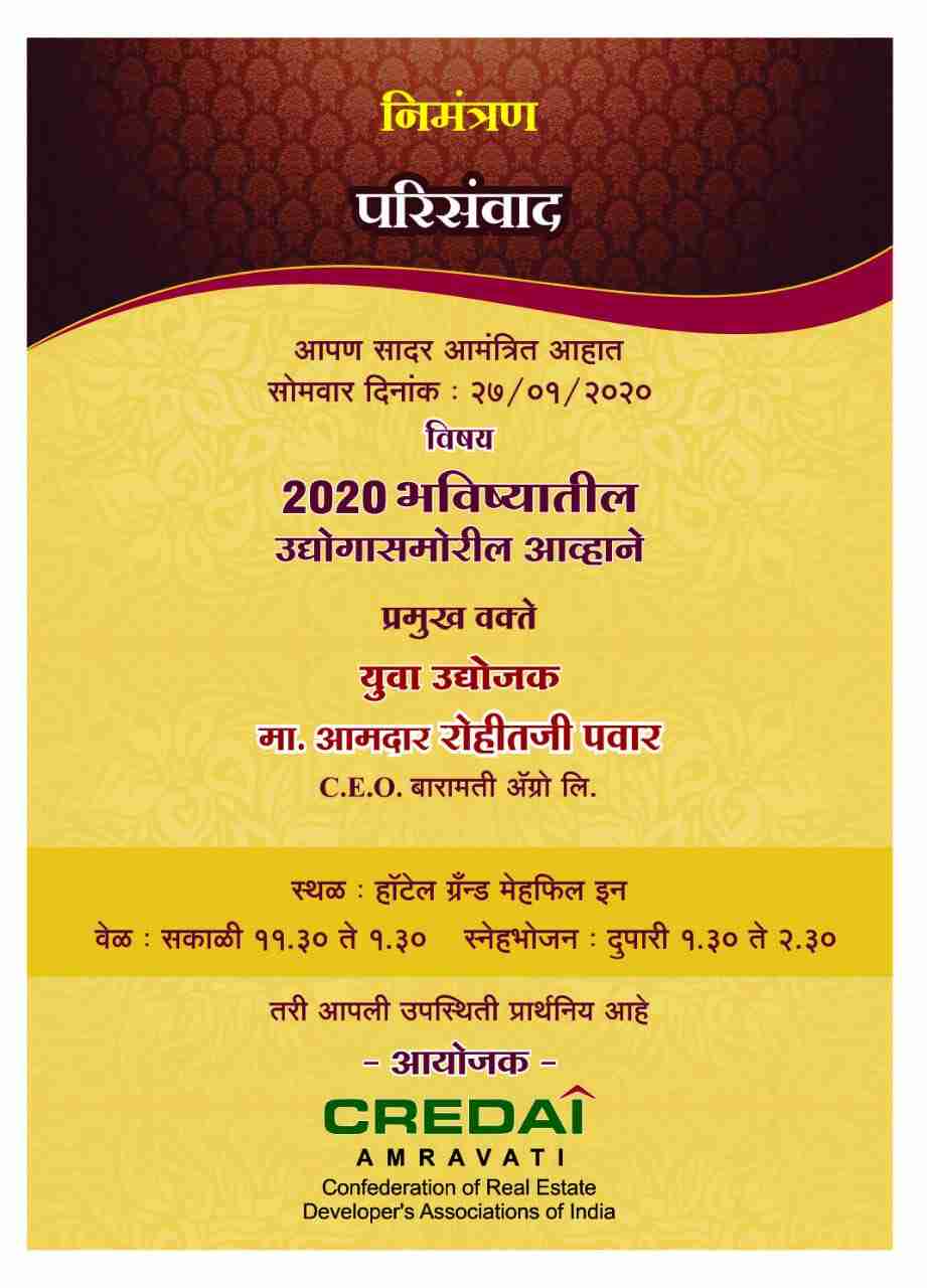 The Confederation of Real Estate Developers’ Associations of India (CREDAI) is the apex body for private Real Estate developers in India. The exponential real estate growth in Amravati in the last decade, has been instrumental in the formation of a representative body of developers and builders – CREDAI Amravati (Confederation of Real Estate Developers’ Association of India - Amravati).